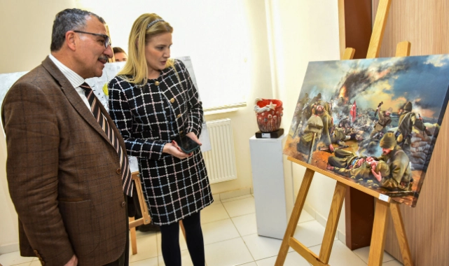 Müzik dinletisinin ardından küratörlüğünü Dr. Öğr. Üyesi Mustafa Konuk ve Dr. Öğr. Üyesi Ahmet Hakan Yılmaz’ın üstlendiği resim serginin açılışı Rektör Mehmet Gavgalı tarafından yapıldı. Rektör Gavgalı eserleri gezerek bilgiler aldı. 18 Mart Çanakkale Şehitlerini Anma Programı kapsamında her yıl düzenlenen sergi başta milli şairimiz Mehmet Akif Ersoy olmak üzere Çanakkale şehitlerimizin aziz hatırasına minnet ve şükran duyguları ile gerçekleştirildi.