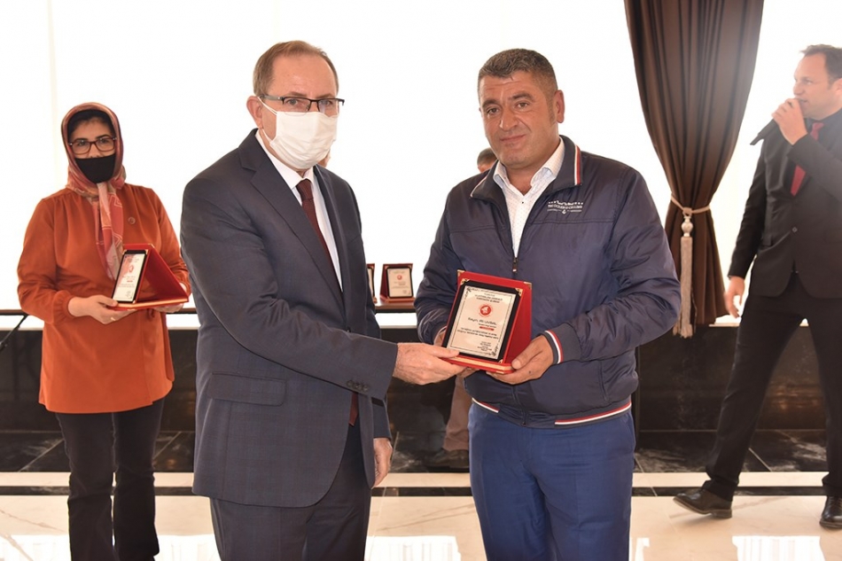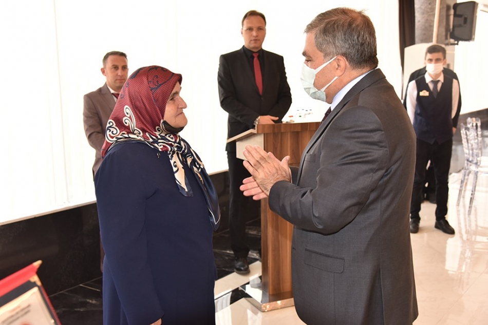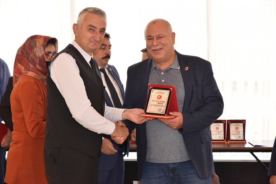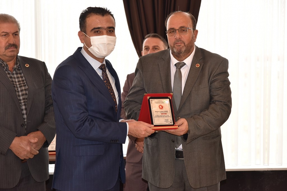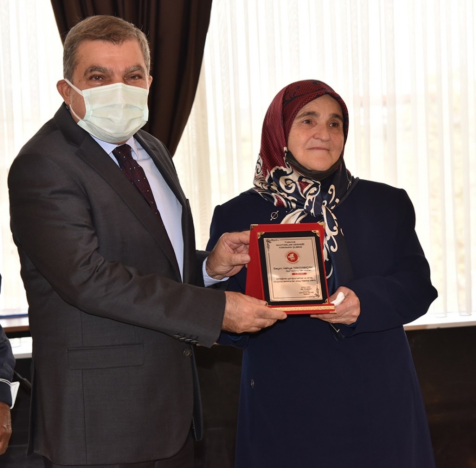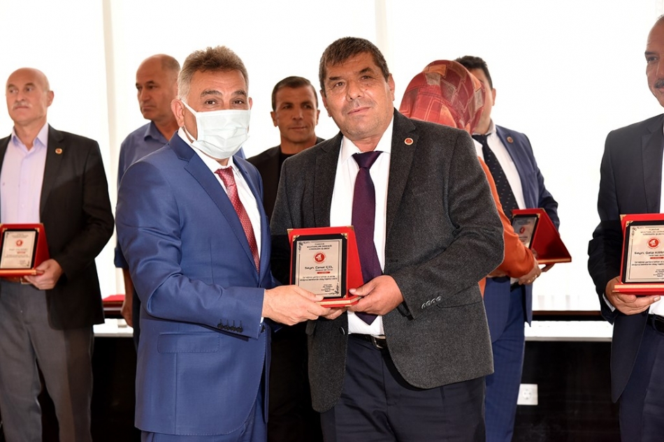 Konuşmaların ardından ilimiz merkez ve merkeze bağlı köy ve mahallerinde 3. 4. ve 5. dönem görev yapan muhtarlara Vali Mehmet Alpaslan Işık ve il protokolü tarafından teşekkür plaketleri verilirken covid-19 nedeniyle vefat eden Rauf Denktaş Mahallesi Muhtarı merhum Yahya Tahtabıçak'ın teşekkür plaketini eşi Kamile Tahtabıçak'a veren Vali Işık, görevi başında iken vefat eden merhum Yahya Tahtabıçak'a Allah'tan rahmet, eşi ve yakınlarına ise sabırlar diledi.