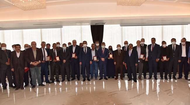 Konuşmaların ardından ilimiz merkez ve merkeze bağlı köy ve mahallerinde 3. 4. ve 5. dönem görev yapan muhtarlara Vali Mehmet Alpaslan Işık ve il protokolü tarafından teşekkür plaketleri verilirken covid-19 nedeniyle vefat eden Rauf Denktaş Mahallesi Muhtarı merhum Yahya Tahtabıçak'ın teşekkür plaketini eşi Kamile Tahtabıçak'a veren Vali Işık, görevi başında iken vefat eden merhum Yahya Tahtabıçak'a Allah'tan rahmet, eşi ve yakınlarına ise sabırlar diledi.