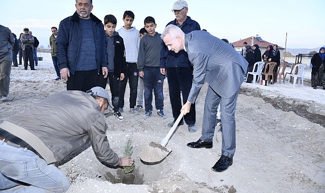 Akabinde 40 dönümlük alanda 2.500 fidan toprakla buluşturuldu.