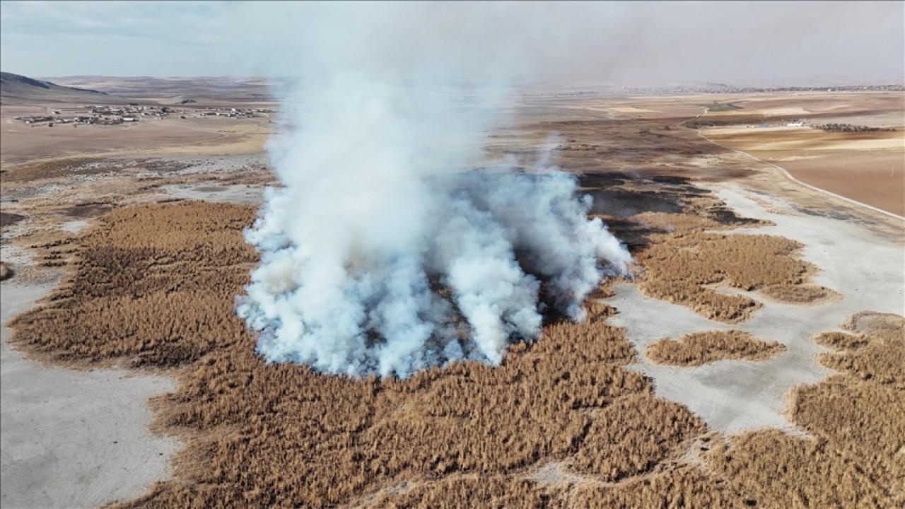 İlçenin 24 kilometre batısında Tuz Gölü Havzası içinde yer alan ve geçen yıl tamamen kuruyan göldeki sazlık alanda, iki gün önce henüz bilinmeyen nedenle yangın çıktı.