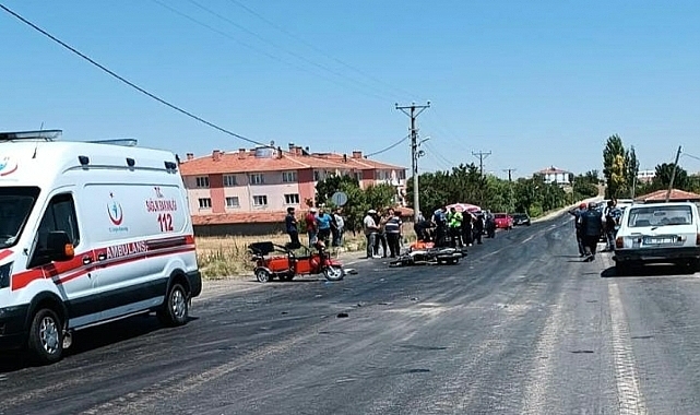 Habip K'nin (26) kullandığı motosiklet, ilçe merkezinde sürücüsünün direksiyon hakimiyetini kaybetmesi sonucu önce İhsan K. yönetimindeki otomobile, ardından Mehmet Ş. (59) idaresindeki akülü araca çarptı.