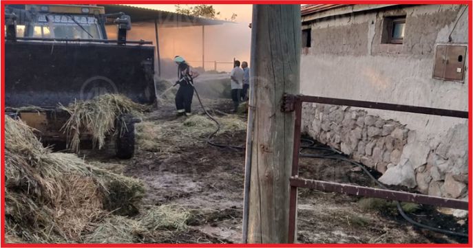 Merkeze bağlı Kameni Köyü'nde Bayram Göçer'e ait çiftliğin bahçesindeki saman balyaları henüz öğrenilemeyen bir nedenle yanmaya başladı.
