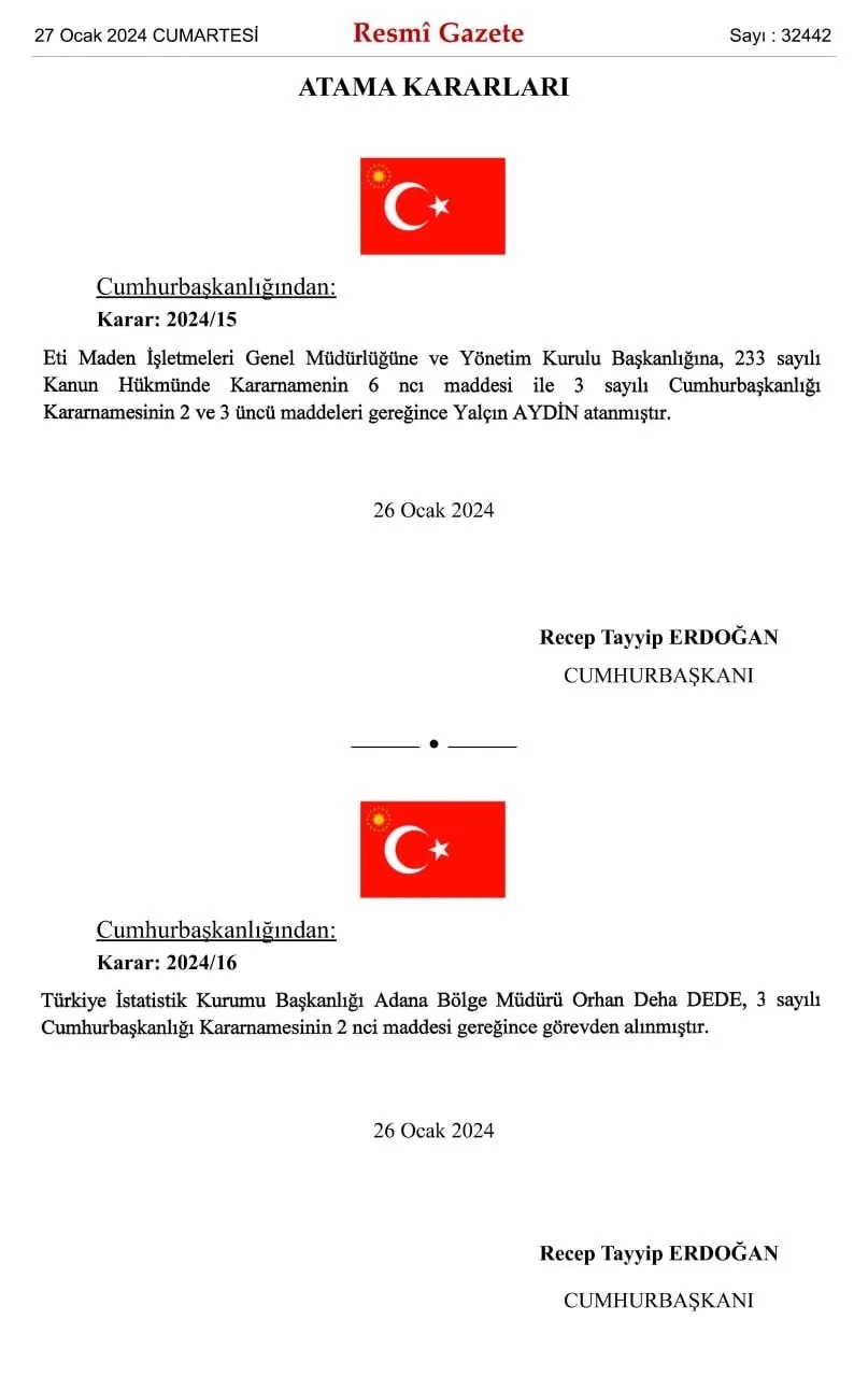 Öte yandan Adana, Iğdır ve Siirt'e yeni emniyet müdürleri atandı. Adana İl Emniyet Müdürlüğü'ne Ahmet Hakan Arıkan, Iğdır İl Emniyet Müdürlüğü'ne Erden Sakarya ve Siirt İl Emniyet Müdürlüğü'ne Necmettin Öztürk atandı.