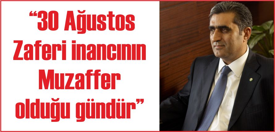 30 Ağustos milletimiz ve Anadolu için yazılan senaryoların çöpe atıldığı ve millet olarak kudret, kabiliyet ve birlik imtihanını başarıyla verdiğimiz son tarihtir. Bugün o tarihi olayın yıl dönümünü kutluyoruz. 30 Ağustos’ta millet olarak biz hür yaşama irademize sahip çıktık. 30 Ağustos’ta biz millet olarak nesebine ve meşrebine, köküne ve kökenine bakılmaksızın milyonlar olarak düşman çizmesi karşısında yekvücut olabilme kabiliyetimizi ispatladık. 30 Ağustos’ta millet olarak biz kendi geleceğimize sahip çıkma kudretini gösterdik. 30 Ağustos’ta millet olarak biz Anadolu’yu acı, kavga ve kaosun merkezi yapmaya çalışanlara inat, kardeşliğin, zenginliğin ve şefkatin coğrafyası yaptık. Bu zaferle Türk milleti bir iddia ortaya koymuş ve o iddiasına tarihi bir imtihandan geçerek sahip çıkmıştır. Bu iddia, ebediyen hür ve bağımsız yaşama kararlılığıdır. Bu iddia Anadolu ve Trakya’da yaşayan tüm millet evlatlarının ortak gelecek hayali ve birlikte yaşama iradesini asla terk etmeyecekleri iddiasıdır.