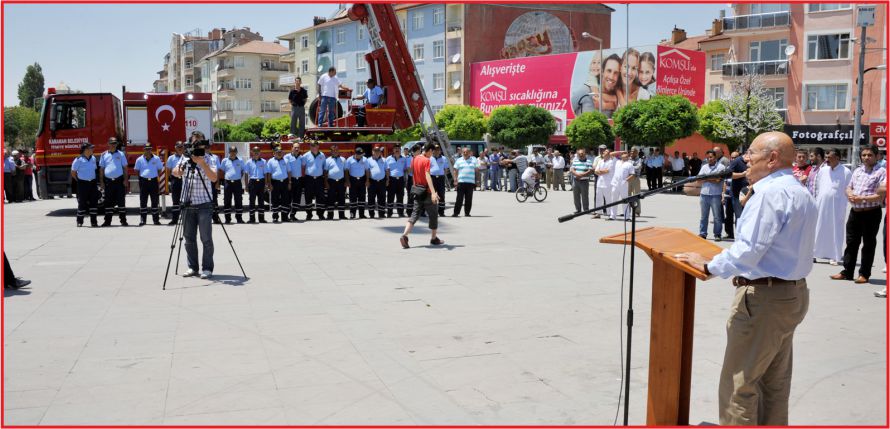 Belediye Başkanı Kamil Uğurlu İtfaiye Müdürlüğü bünyesinde hizmet verecek bu araç hakkındaki teknik bilgileri bizzat kendisi verdi. Başkan Uğurlu konuşmasında: “Değerli Karamanlı hemşehrilerim. Bildiğiniz üzere sürekli büyümekte bir şehirde yaşıyoruz. Şehir büyüdükçe binalarda büyüyor ve yükseliyor. Dolayısı ile bu yüksek binalarda yaşanabilecek yangın veya benzeri durumlarda anında müdahale edebilecek bir itfaiye aracını hizmete sokuyoruz. Allah bu aracı kullanmamızı gerektirecek hadiselerden tüm halkımızı ve itfaiye personelimizi muhafaza eylesin. Karamanımıza hayırlı olsun” .