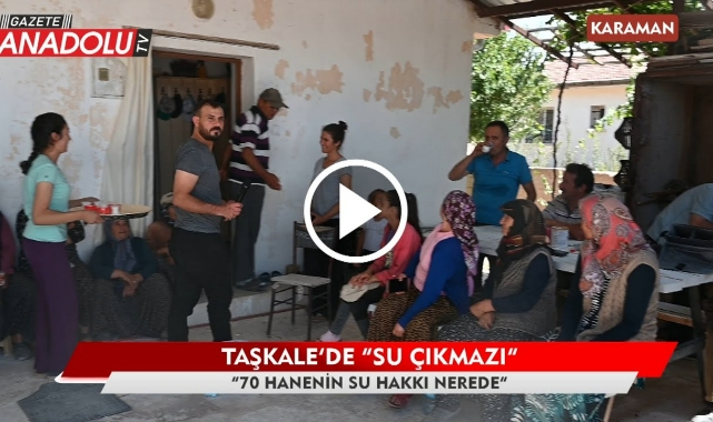 Karaman’ın Taşkale Köyü Atatürk Mahallesinde yaklaşık bir aydır su sıkıntısı yaşanıyor. Taşkale’nin merkezine yaklaşık 15 kilometre uzaklıktaki mahallenin kendi su kaynağı olmadığı için merkezden gelen su hattıyla su ihtiyaçları karşılanıyordu. Ancak sebebi henüz tam olarak bilinmeyen bir sebepten dolayı mahallenin çeşmelerinden su ya hiç akmıyor ya da iplik kalınlığında bir yoğunlukla akıyor. Atatürk Mahallesindeki vatandaşlar da bu durumun sorumlusu olarak Taşkale Muhtarı Hasan Karacayı işaret ediyor.