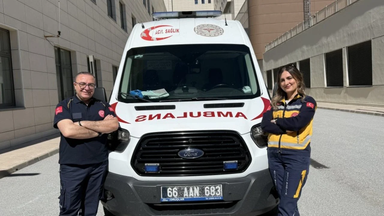 Mesai arkadaşlıkları 11 yıl önce evlilikle sonuçlanan 2 çocuk sahibi çift, 2019'dan bu yana da Yozgat'ta aynı ambulansta hastalara hızlı şekilde ulaşıp gerekli müdahaleyi yapabilmek için çaba gösteriyor.