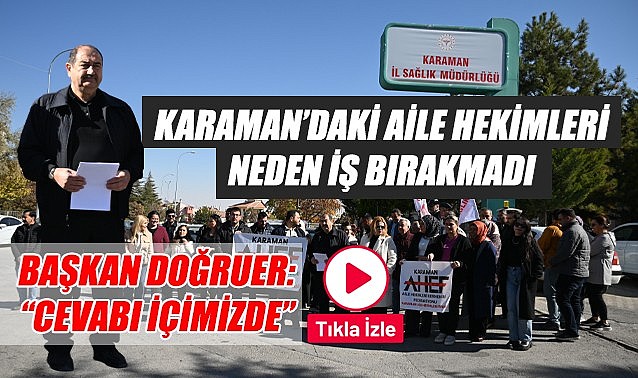 Biz de 7 kasım Perşembe günü Karaman Sağlık İl Müdürlüğü önünde, Karaman Aile Hekimleri Derneği Başkanı Süleyman Doğruer’in basın sözcülüğünde toplanan aile hekimlerinin sorunlarını gündeme getirmek istedik. Aile hekimleri adına açıklama yapan Başka Doğruer’e Karaman’da neden iş bırakılmadı sorusunu yönelttik. Ancak o da sorumuzu yanıtsız bırakarak: “Kendi aramızda aldığımız bir karardır” diyerek cevabın kendi içlerinde saklı olduğunu ifade etti.