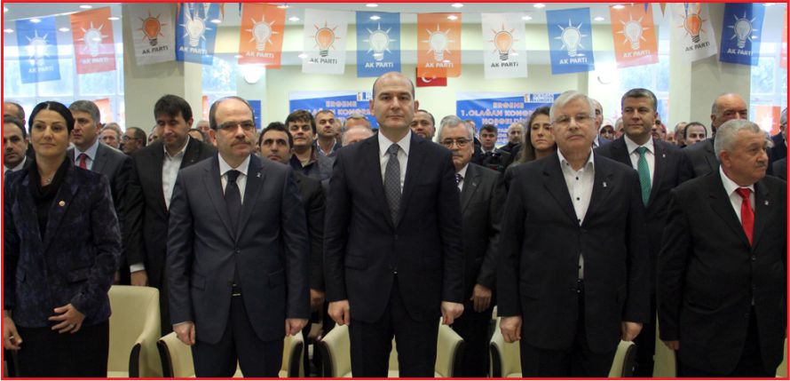 "17-25 Aralık gibi belki de Cumhuriyet tarihimizin görmediği en büyük entrikalarına ve hilelerine rağmen, içeride ve dışarıda hepsi bir araya geldiler, hepsi psikolojik olarak ve asimetrik bir başlattılar. Bu ülkenin topraklarının ucuzlamasını istediler. Çünkü yeni dünyanın en temel ve en stratejik merkezlerinden birisi Türkiye'dir. Modern ipek yolunun merkezi Türkiye'dir. Enerji geçiş güzergahının merkezi Türkiye'dir. Batı ve doğu arasında insan kaynaklarıyla beraber geleceğe adım atabilecek en temel stratejik noktalardan bir tanesi Türkiye'dir. Baktılar ki Çözüm Süreci yapıyorlar. Baktılar ki AK Parti, bu coğrafyadaki bugüne karşılaştıkları ve karıştırdıkları her meseleyi, bir taraftan dindarların, bir taraftan köylülerin, bir taraftan Alevilerin bir taraftan Kürtlerin bir taraftan bu memleketin evlatlarının ekonomik olarak sindirilmeye çalışılan evlatların ötekileştirilmesinden Türkiye'yi çekip çıkarıyor, karıştırmak istediler."