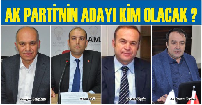 Ak Parti Karaman Belediye Başkanlığı için halen bu görevi yürüten Ertuğrul Çalışkan kağıt üzerinde şanslı görünüyor, görünmesine. Ancak, kulislerde çok fraklı şeyler gündeme gelmeye başladı., Ak Parti il başkanı Mehmet Er’in gönlünden belediye başkanlığı geçtiği ve bunun için nabız yokladığı iddia ediliyor. Ak Parti Genel Başkanı Recep Tayyip Erdoğan’in ‘Kimse bize sormadan, kafasına göre aday olmasın, görevinden istifa etmesin’ açıklaması ile İl Başkanı Mehmet Er’in bu konuyu dikkate aldığı ve genel merkez ile dirsek temasına geçtiği belirtiliyor. Geçtiğimiz günler içerisinde il başkanı Mehmet Er’in gecenin geç saatlerinde Genel Merkezi çağrıldığı, sabaha süren görüşmelerde kendisine aday olup olmayacağı sorulduğu iddia ediliyor.Bu görüşmenin detayları ise bir sır gibi saklanıyor.