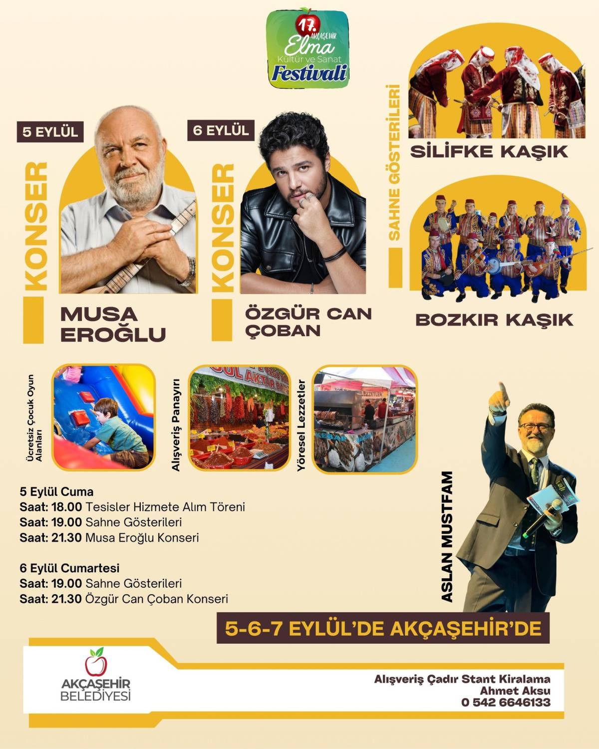 Akçaşehir Belediyesi, 5 Eylül’de hem yeni projelerin açılışını gerçekleştirecek hem de 17. Elma Kültür ve Sanat Festivali’ni düzenleyecek. Belediye Başkanı Soner Yeşildaş, tüm vatandaşları etkinliklere davet etti.