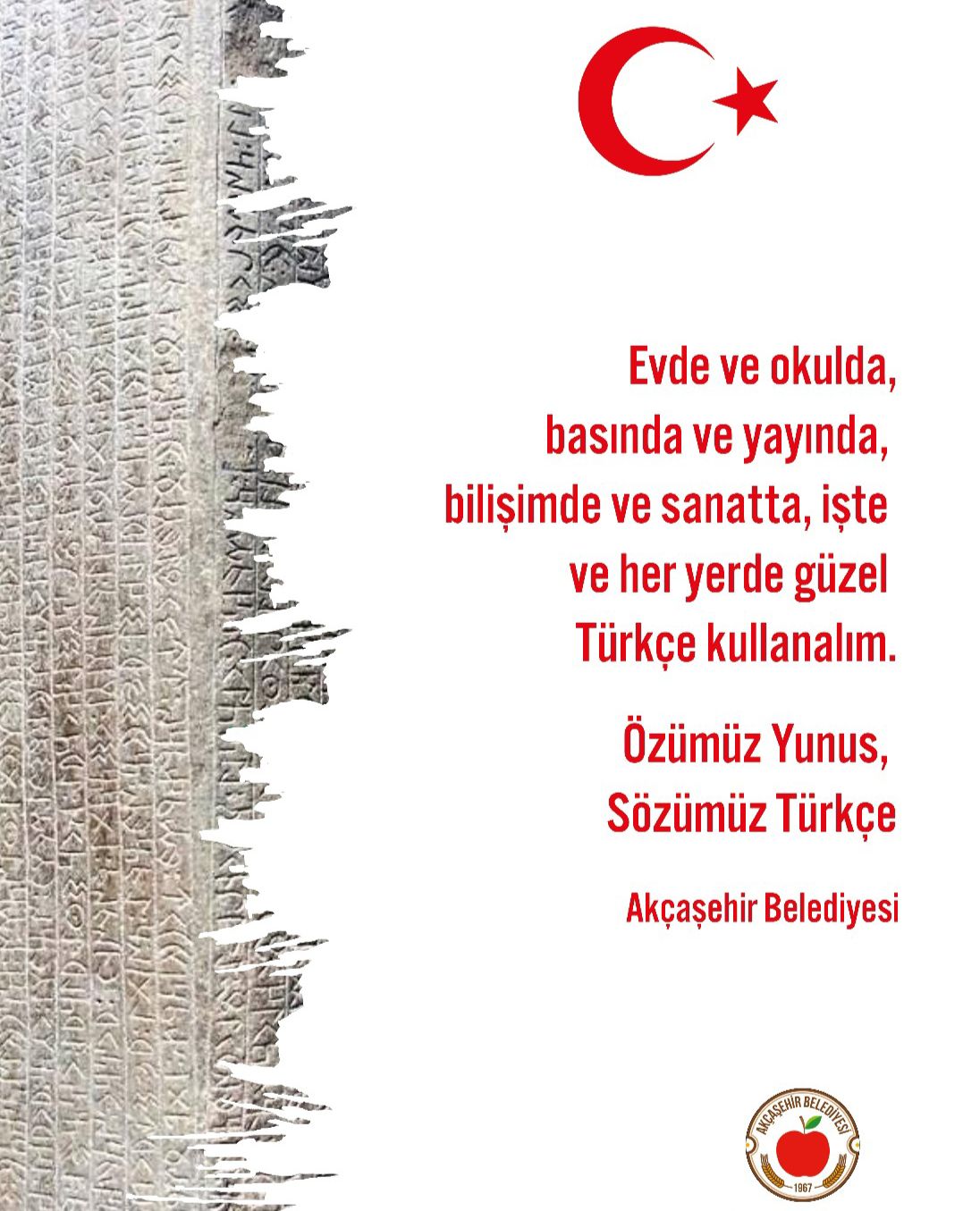Belediye ayrıca, “Özümüz Yunus, sözümüz Türkçe” diyerek Türkçenin kültürel derinliğine vurgu yaptı.