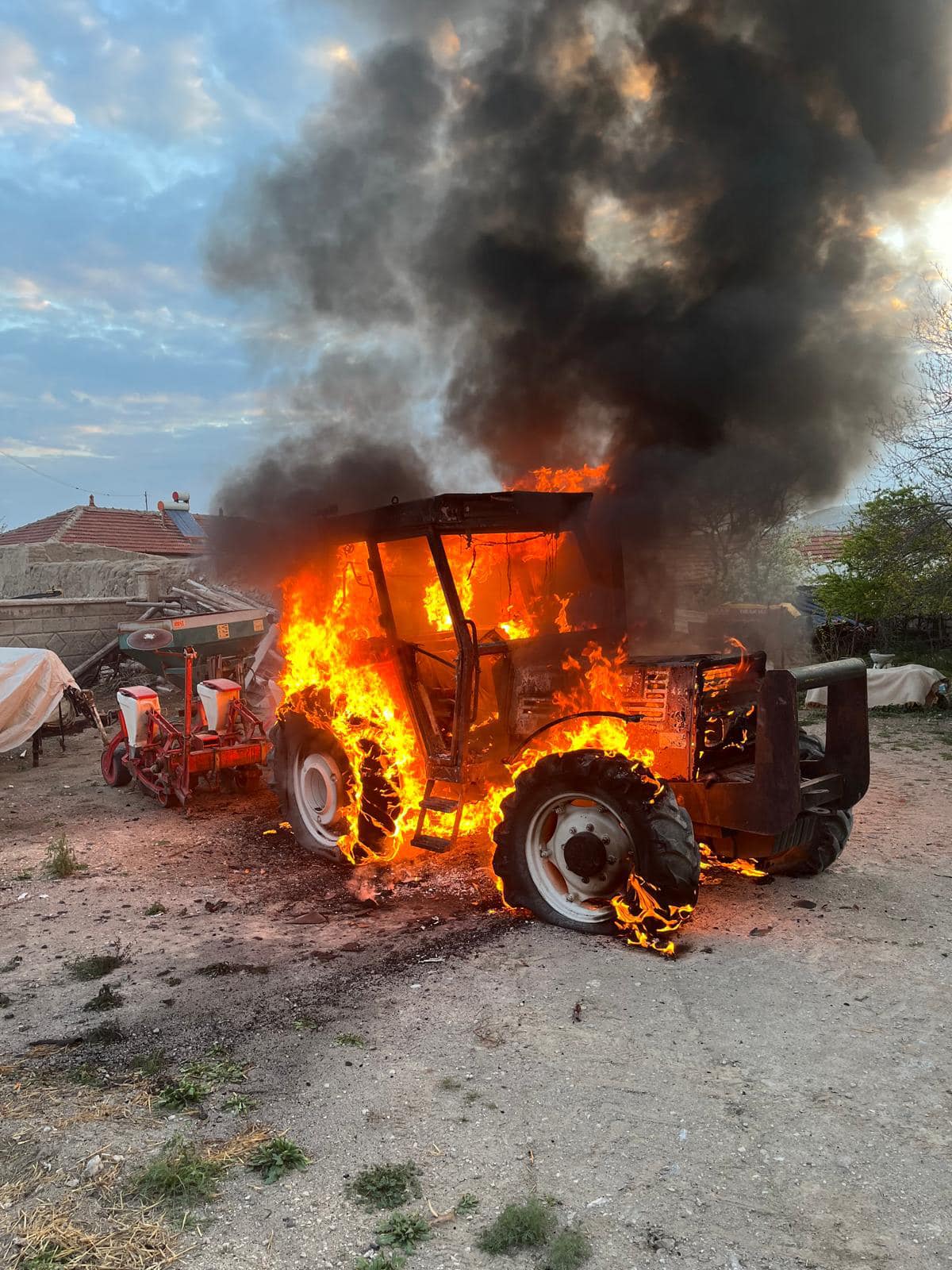 Karaman Merkez bağlı Süleymanhacı köyünde bir traktör alev topuna döndü. Yangın çiftçilikle uğraşan Yusuf Gür’e ait traktörde meydana geldi. Çıkış sebebi henüz bilinmeyen yangından traktör alevler içinde kaldı. Yangını gören köydeki vatandaşların yardımıyla kontrol altına alınan alevler olası faciaların yaşanmasının önüne geçti. Yangında traktör kullanılamaz hale gelirken yangından haberdar olan Karaman Ziraat Odası Başkanı Mehmet Bayram, çiftçi Yusuf Gür için geçmiş olsun mesajı yayınladı. Başkan Bayram mesajında, “Allah beterinden korusun. Geçmiş olsun. Dün akşam saatlerinde Süleymanhacı köyümüzde Çiftçimiz Yusuf Gür’e ait traktör park halinde henüz belirlenemeyen sebeple çıkan yangın sonrası tamamen yanmış kullanılamaz hale gelmiştir.
