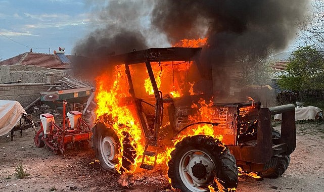 Alev topuna dönen traktör kül oldu…