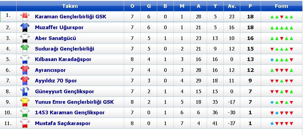 Karaman Amatör Küme’de 8. hafta karşılaşmaları, Pazar günü oynanan maçlarla tamamlandı. Haftaya lider olarak giren Karaman Gençlerbirliği GSK, deplasmanda aldığı galibiyetle liderliğini sürdürdü.