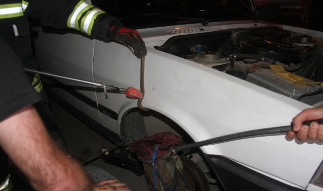 Konya'nın Beyşehir ilçesinde bir otomobilin jantına giren yılan, itfaiye ekiplerince çıkarıldı