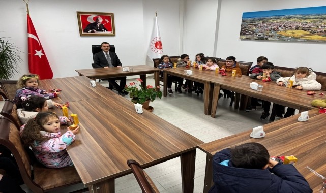 Başsavcı Mehmet Onurkan Gülderen de yoğun çalışma temposu içinde küçük misafirleri ağırlamaktan duyduğu memnuniyeti ifade ederek çocuklarla fotoğraf çektirdi, eğitim hayatlarında başarılar diledi.