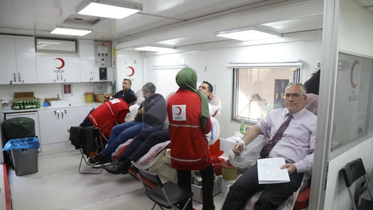 İlçe Milli Eğitim Müdürlüğü tarafından desteklenen etkinlik kapsamında Türk Kızılay'a ait gezici kan alma aracı okul bahçesine konuşlandırıldı.