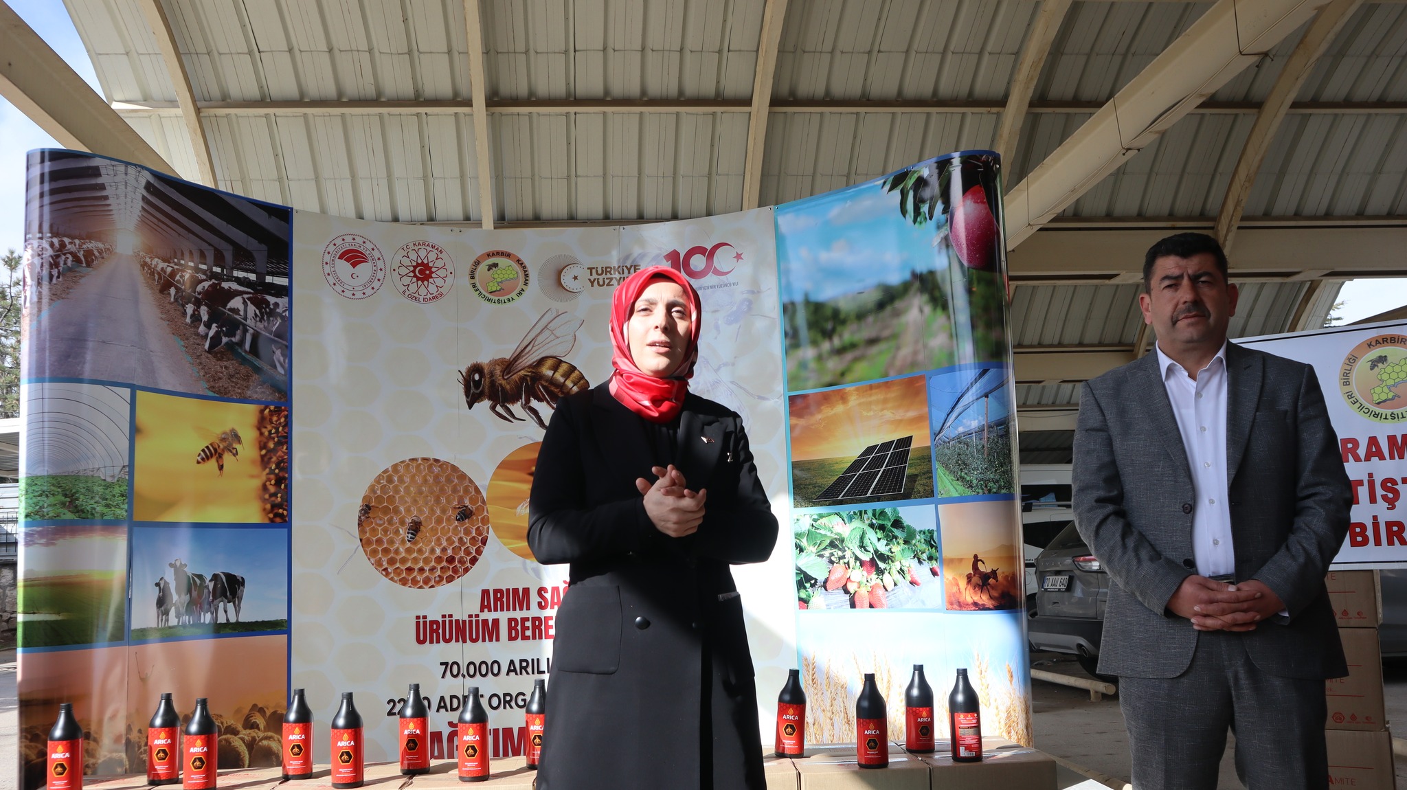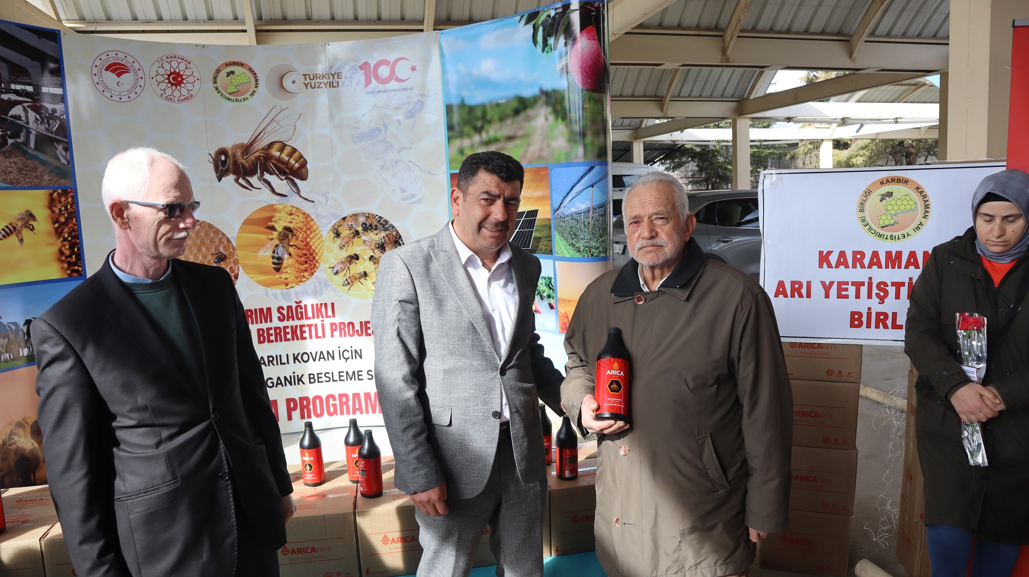 Karaman İl Tarım ve Orman Müdürlüğü tarafından Arım Sağlıklı Ürünüm Bereketli Projesi" kapsamında %75 İl Özel İdaresi desteği ile 70.000 kovan için temin edilen beslenme sıvıları arıcılara teslim edildi.