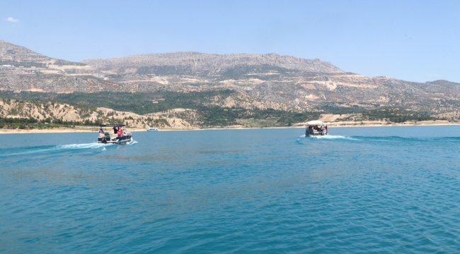 Toros Dağları eteklerine kurulu Ermenek ilçesindeki Ermenek Barajı'nın oluşturduğu gölün turkuaz rengine çam, ardıç ve sedir ormanları yeşilin farklı tonlarıyla eşlik ediyor