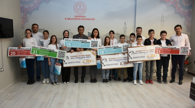Akıllı Teknolojiler Sağlık ve Akıllı Teknolojiler Sosyal Alan kategorilerinde Türkiye birinciliği, Akıllı Teknolojiler Sağlık kategorisinde ise Türkiye üçüncülüğü alarak Karaman’a başarıyla dönen proje ekibini tebrik eden İl Müdürü Çalışkan, her alanda yılsonu etkinliklerinin bolca yapıldığı bu dönemde yeni başarı hikâyelerinin yazılmasının mutluluğu ve heyecanını yaşadığını dile getirdi.