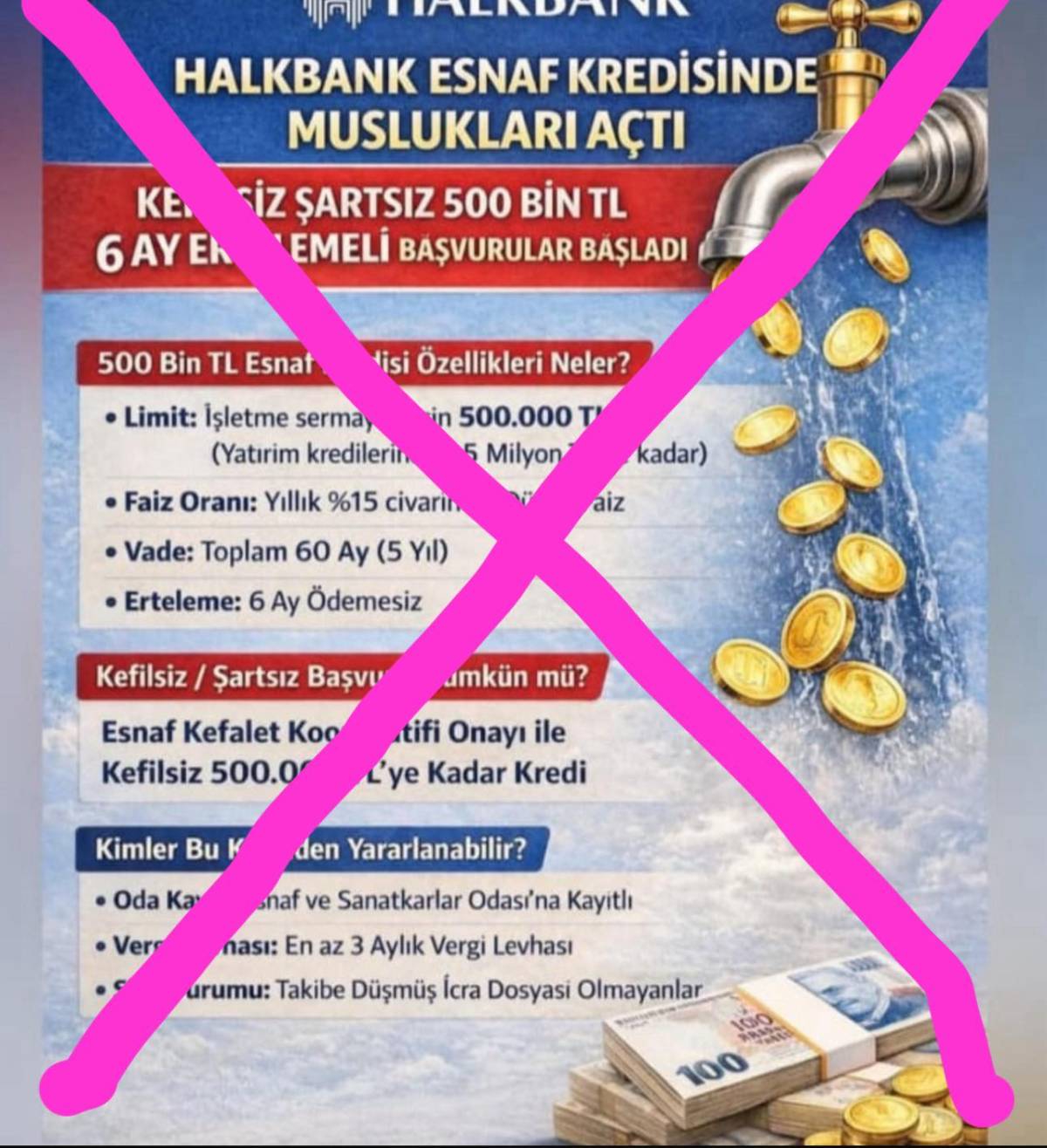Cemal Özbay açıklamasında, “Esnaf Kredi Kefalet Kooperatifimizin sayın ortakları ve kıymetli esnaf arkadaşlarımız; son günlerde sosyal medyada yaygın şekilde bu ve benzeri paylaşımlar yapılmaktadır. Bu paylaşımlar tamamen yalan haberdir. Halkbank veya Esnaf Kredi Kefalet Kooperatifleri üzerinden bu şekilde bir kredi uygulaması bulunmamaktadır” dedi.
