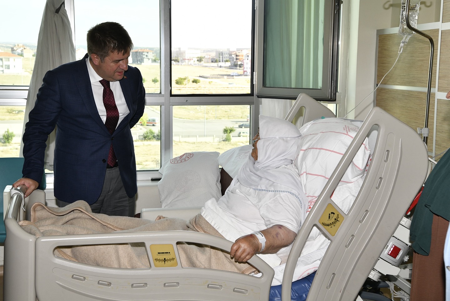 Şehidimizin kıymetli annesine geçmiş olsun dileklerini ileterek bayramını tebrik eden Vali H.Engin Sarıibrahim, sağlık durumu hakkında doktorlardan bilgi aldı.