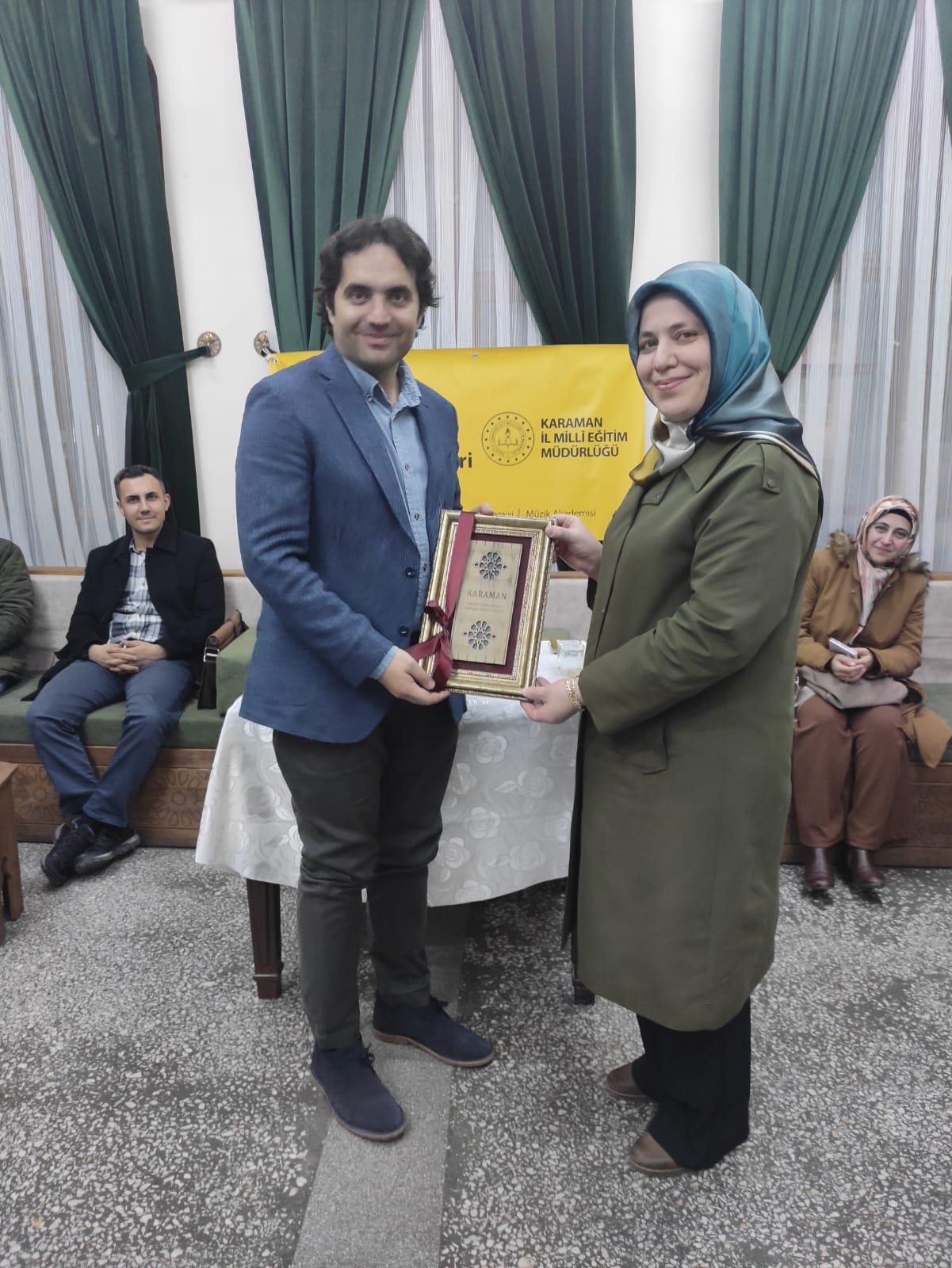 Program sonunda, Doç. Dr. Mert Öksüz, öğretmenlerin Bekir Sıtkı Erdoğan hakkındaki sorularını yanıtladı. Program, Karaman Öğretmen Akademileri İl Koordinatörü Rukiye Yılmazer’in Doç. Dr. Mert Öksüz’e günün anısına hediye takdim etti.