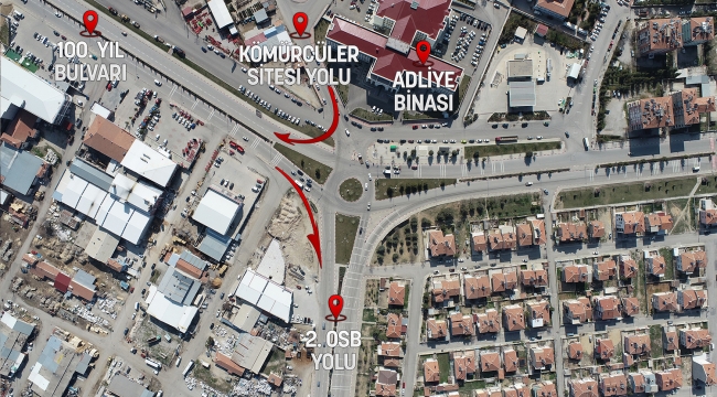 Yine aynı kavşakta, Kömürcüler Sitesi istikametinden gelip sağa doğru 100. Yıl Bulvarına dönülen alanda düzenleme çalışması yapılarak, araçların daha sağlıklı ve güvenli bir şekilde seyir etmesi sağlanmış olacak.