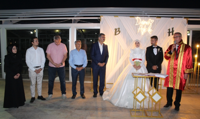 Düğünde genç çiftin nikahını damadın belediye başkanı olan babası kıydı.