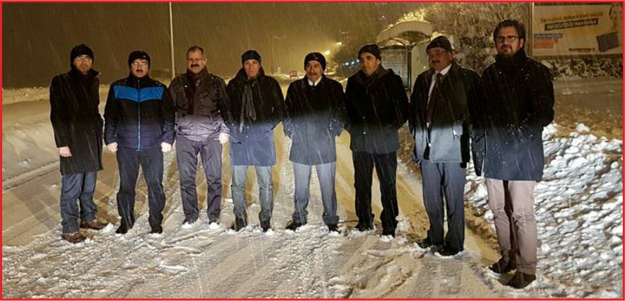 İlimizde hafta başında başlayan yoğun kar yağışı dört gündür kesintisiz devam ediyor. Kar yağışı karşısında belediye ekipleri kar küreme ve tuzlama çalışmalarını 24 saat aralıksız sürdürüyor. AK Parti Genel Merkezi'nde yapılan İl Başkanları toplantısı için Ankara'da bulunan Belediye Başkanı Ertuğrul Çalışkan, gece saatlerinde Karaman'a döndü. Başkan Çalışkan, beraberindeki başkan yardımcıları ve meclis üyeleri ile birlikte sabahın erken saatlerine belediye ekiplerinin kar küreme ve tuzlama çalışmalarını takip etti.