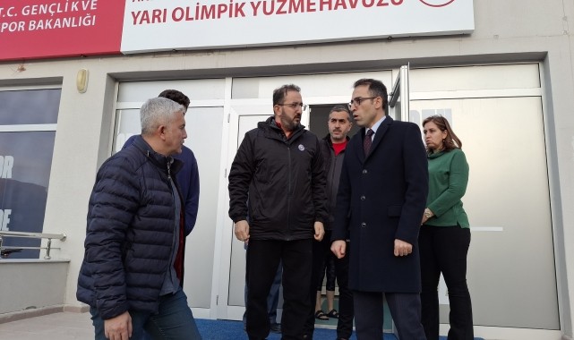 Yılmaz, yarı olimpik yüzme havuzunu ziyaret ederek İlçe Gençlik ve Spor Müdürü Ahmet Lal ve Gençlik Müdürü Hamza Yiğit'ten havuz suyunun sıcaklığı, temizliği ve hijyen durumları hakkında bilgiler aldı.