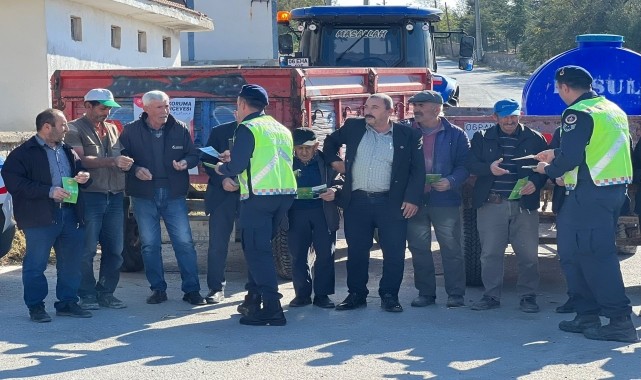 İlçe Jandarma Komutanlığı ekipleri, traktörlerin karıştığı kazaları azaltmak için "reflektör tak görünür ol" sloganıyla traktör sürücülerini bilgilendirdi.