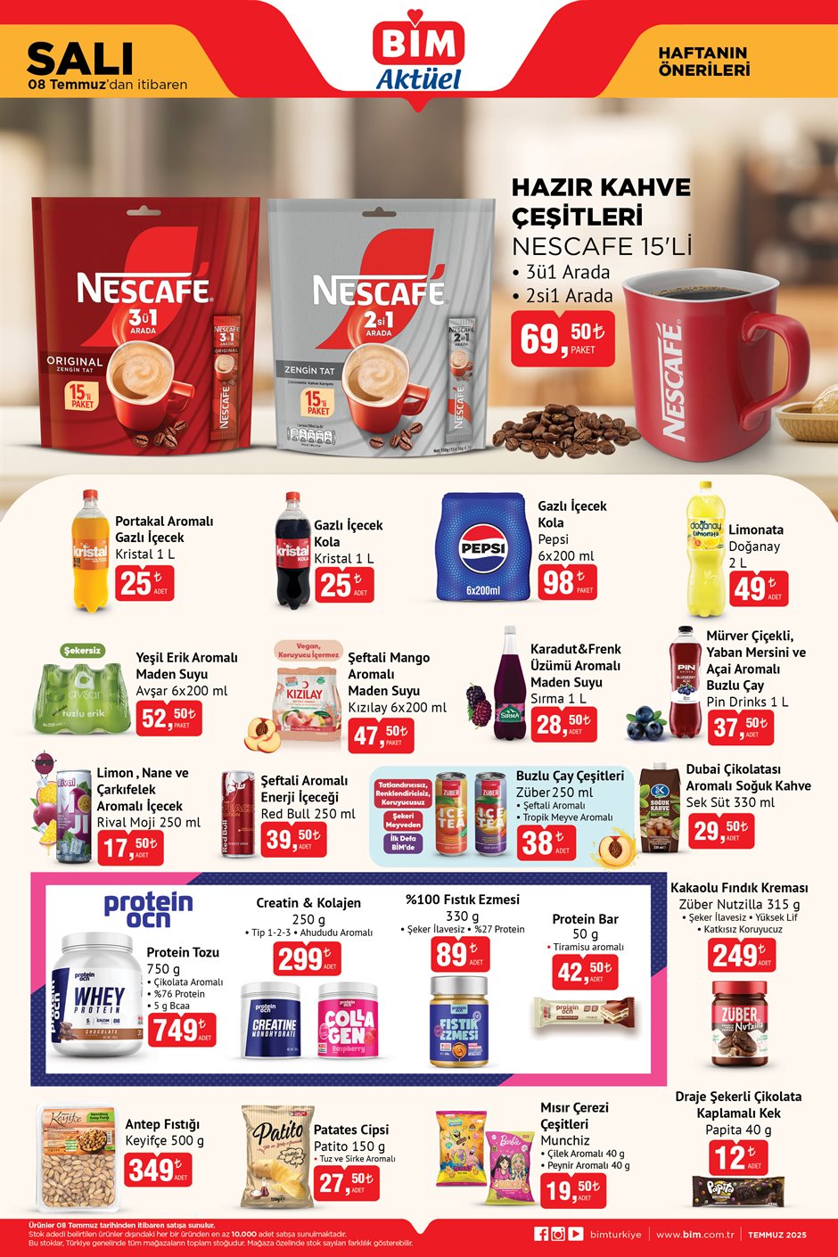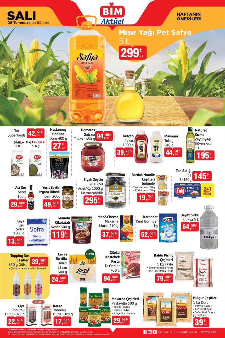BİM, 8 Temmuz itibarıyla geçerli olacak yeni aktüel ürünler kataloğunu paylaşırken, haftanın önerileri arasında temel gıda ürünlerinden atıştırmalıklara kadar pek çok ürün öne çıkıyor.