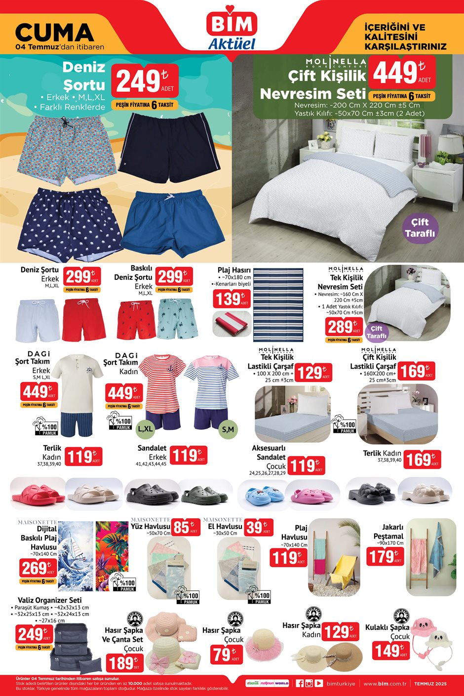 BİM, 4 Temmuz tarihinden itibaren geçerli olacak yeni aktüel kataloğunu paylaştı. Geniş ürünleriyle öne çıkan kampanya kapsamında ev kadınlarını ve yaz tatili planı yapanları sevindirecek indirimler bulunuyor.