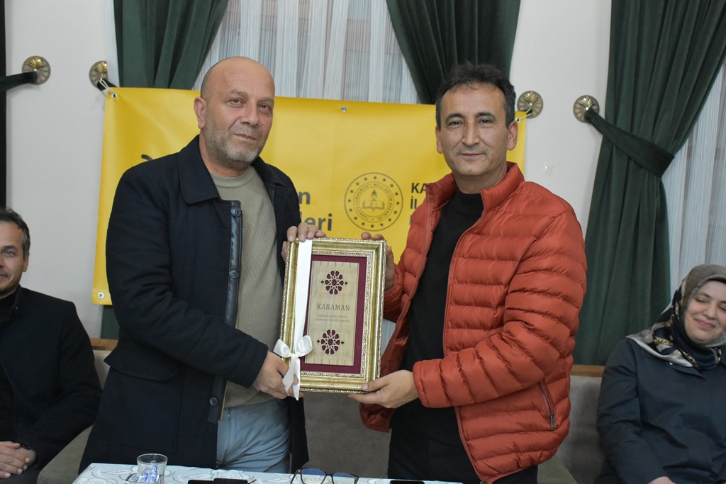Programın sonunda, İl Millî Eğitim Müdürü Mehmet Çalışkan, konuşmasından dolayı Burhan Yemiş’e günün anısına hediye takdim etti.