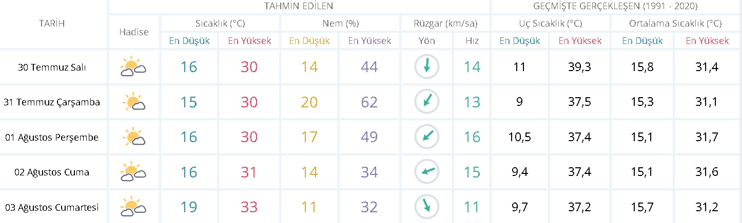 Karaman'da önümüzdeki hafta hava sıcaklıkları mevsim normallerinin üzerinde seyredecek. Gündüzleri en yüksek sıcaklık 37 derece civarında olacakken, geceleri ise sıcaklıklar 12 dereceye kadar düşecek.