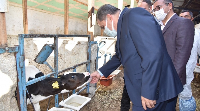 Uygulamayı bizzat yerinde takip ederek İl Müdürü Yusuf Şahinbaş’tan projenin içeriği ve amacı hakkında bilgiler alan Vali Işık, daha sonra yine aynı bölgede bulunan süt üretim merkezi ve buzağıların bulunduğu ahırı ziyaret ederek bir süre incelemelerde bulunarak yürütülen çalışmalara ilişkin bilgiler aldı. İlimiz hayvancılığın gelişimine katkı sağlaması beklenen projenin hedefine ulaşması temennisinde bulunan Vali Işık, projeyi yürüten İl Tarım ve Orman Müdürü Şahinbaş ve ilgili kurum personeline çalışmalarında kolaylıklar diledi.