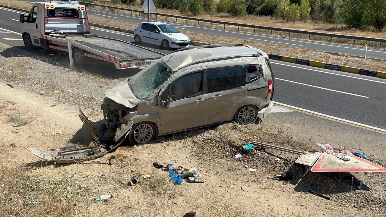 Kazada, sürücü ile araçta bulunan H.E. (41), Ö.H.E. (8) ve F.B.E. (4) yaralandı.