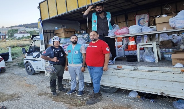 Dernekten yapılan açıklamada, bölgede görev yapan personel ve gönüllülere kumanya ve temel ihtiyaç malzemeleri gönderildiği belirtildi.