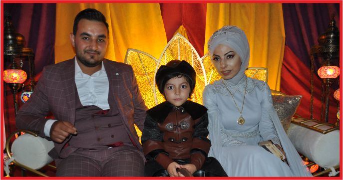Truva Düğün Salonunda yemekli olarak organize edilen düğün törenine katılım oldukça yüksekti. Misafirlere etli-pilav ikram edilmesi ile başlayan düğünde, erkekliğe adımını atan Nevzat Efe, salona Diriliş Ertuğrul dizisinden esinlenerek yapılan ve dizideki küçük Osman’ın kıyafetleri ile girmesi büyük beğeni kazandı.