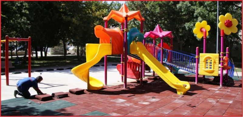 Karaman Belediyesi Park ve Bahçeler Müdürlüğü ekipleri, il merkezindeki parklarda güvenlik tedbirlerini arttırmak amacıyla çocuk oyun alanlarında kauçuk zemin kaplama çalışması başlattı.