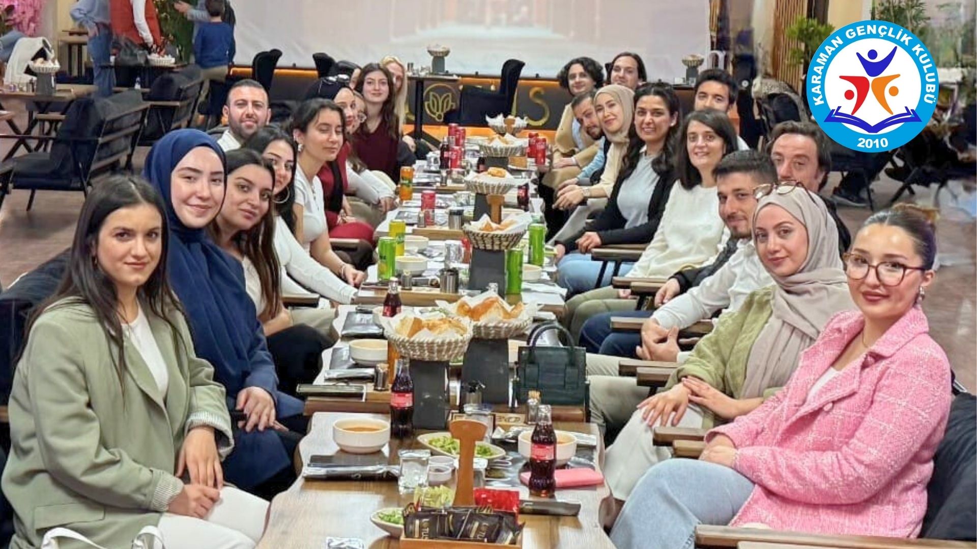 Karaman Gençlik Kulübü Derneği, Ramazan ayının birlik ve beraberlik ruhunu devam ettirmek amacıyla üyeleri ve gönüllüleri ile iftar programında bir araya geldi. Programa derneğin yönetim kurulu, üyeleri, gönüllüleri ile birlikte derneğin üniversite temsilcisi KMÜ Gençlik Kulübü Topluluğu üye ve gönüllüleri, üniversite öğrencileri, topluluk akademik danışmanı ve değerli eşi, destek veren akademisyenler de katılım sağladı.