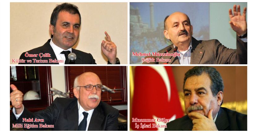 Günlerdir Başbakan Recep Tayyip Erdoğan tarafından bakanlar kurulunda yapacağı değişiklik, dün akşam saatlerinde gerçekleşti ve dört bakan görevlerinden alınırken, yerlerine atama yapıldı. Milli Eğitim Bakanı Ömer Dinçer’in yerine Eskişehir Milletvekili Nabi Avcı, İçişleri Bakanı İdris Naim Şahin’in yerine Mardin Milletvekili Muammer Güler, Kültür ve Turizm Bakanı Ertuğrul Günay’ın yerine Adana Milletvekili Ömer Çelik ve Sağlık Bakanı Recep Akdağ’ın yerine ise Edirne milletvekili Mehmet Müezzinoğlu getirildi.
