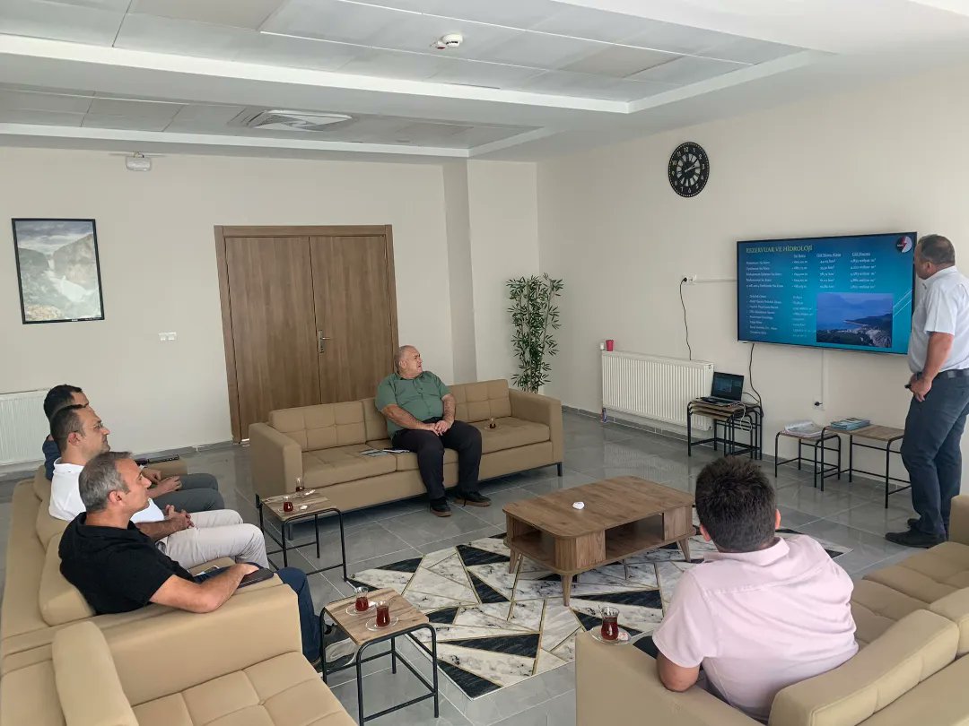 İncelemelerin ardından DSİ 42. (Karaman) Şube Müdürü Halil İbrahim Özoğlu ve teknik heyet, EUAŞ işletme binasında Ermenek Barajı ve HES santrali hakkında sunum yaptı.