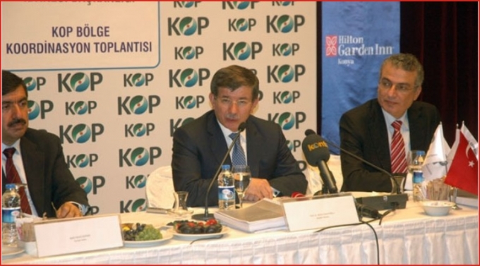 Bakan Davutoğlu, Konya, Karaman, Niğde ve Aksaray’ın dahil ğu KOP Bölgesi’nin 60 bin m2’lik bir alana, dolayısıyla Türkiye’nin yüzde 10’una tekabül ettiğini hatırlatarak, “ Şu an yapmakta ğumuz toplantı teknik bir toplantı değildir. Bu bir zihniyet toplantısıdır. Her projeyi, sadece büyük projeleri değil, köylerde yürütülen en küçük projeyi bile takip etmelisiniz. Uykunuz haram olmalı. KOP denince, ilk başta tarım ve sulama aklınıza gelebilir. Elbette bu öncelikli bir sektördür. Ama KOP İdaresi bölgenin entegre kalkınmasını sağlamak için kurulmuştur. Tarım ve sulama ile birlikte enerji ve ulaşım sektörleri de harekete geçirilecektir. Bu açıdan geçtiğimiz günlerde Bakanlar kurulumuzun kararıyla Karapınar’ın Enerji Endüstri Bölgesi ilan edilişinin önemine dikkat çekerim. Bunun yanı sıra önümüzdeki günlerde Konya-Karaman-Mersin hattında lojistik çalışmalarıyla ilgili de kapsamlı bir toplantı yapılacağı müjdesini vermek isterim” diye .