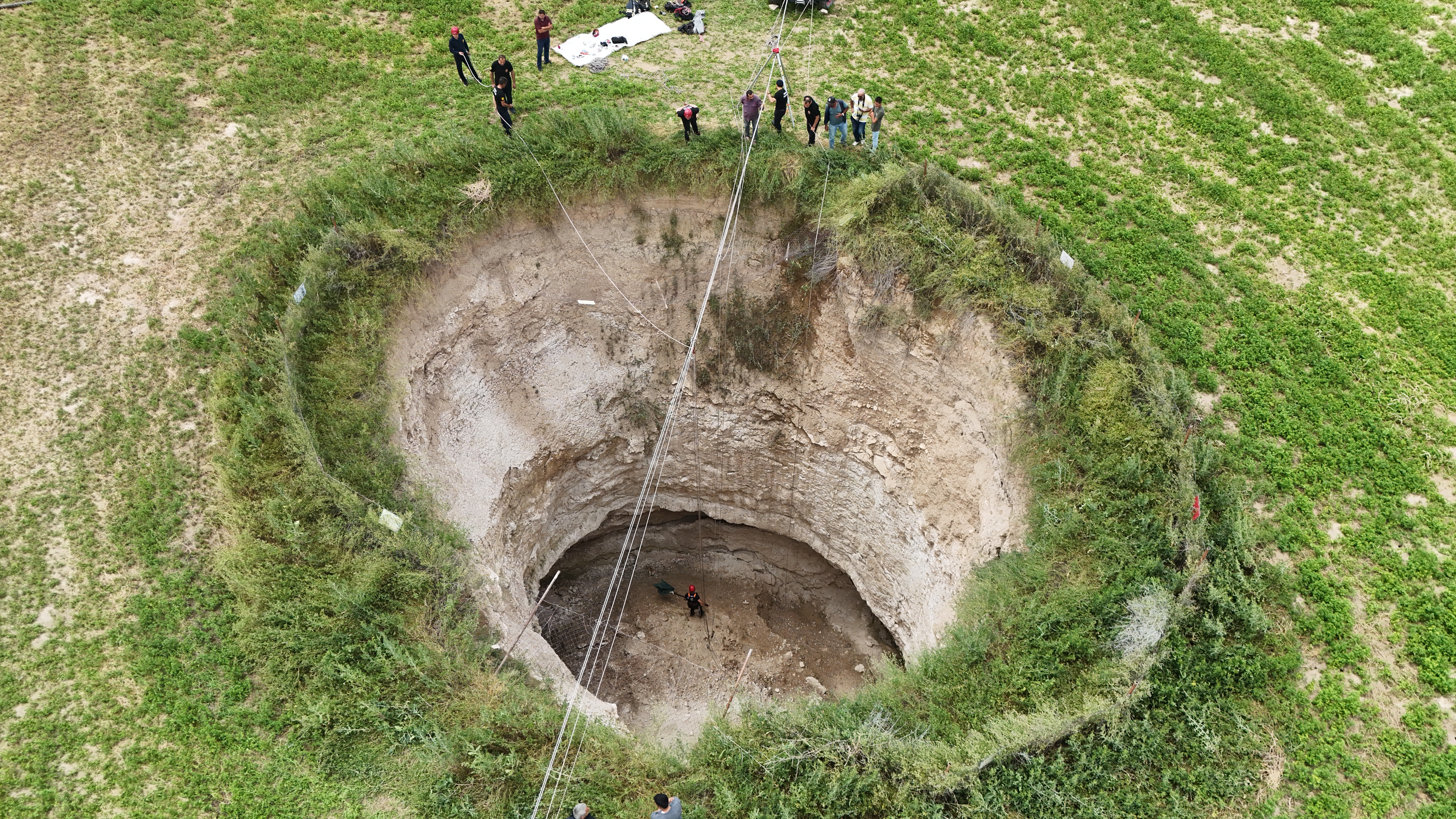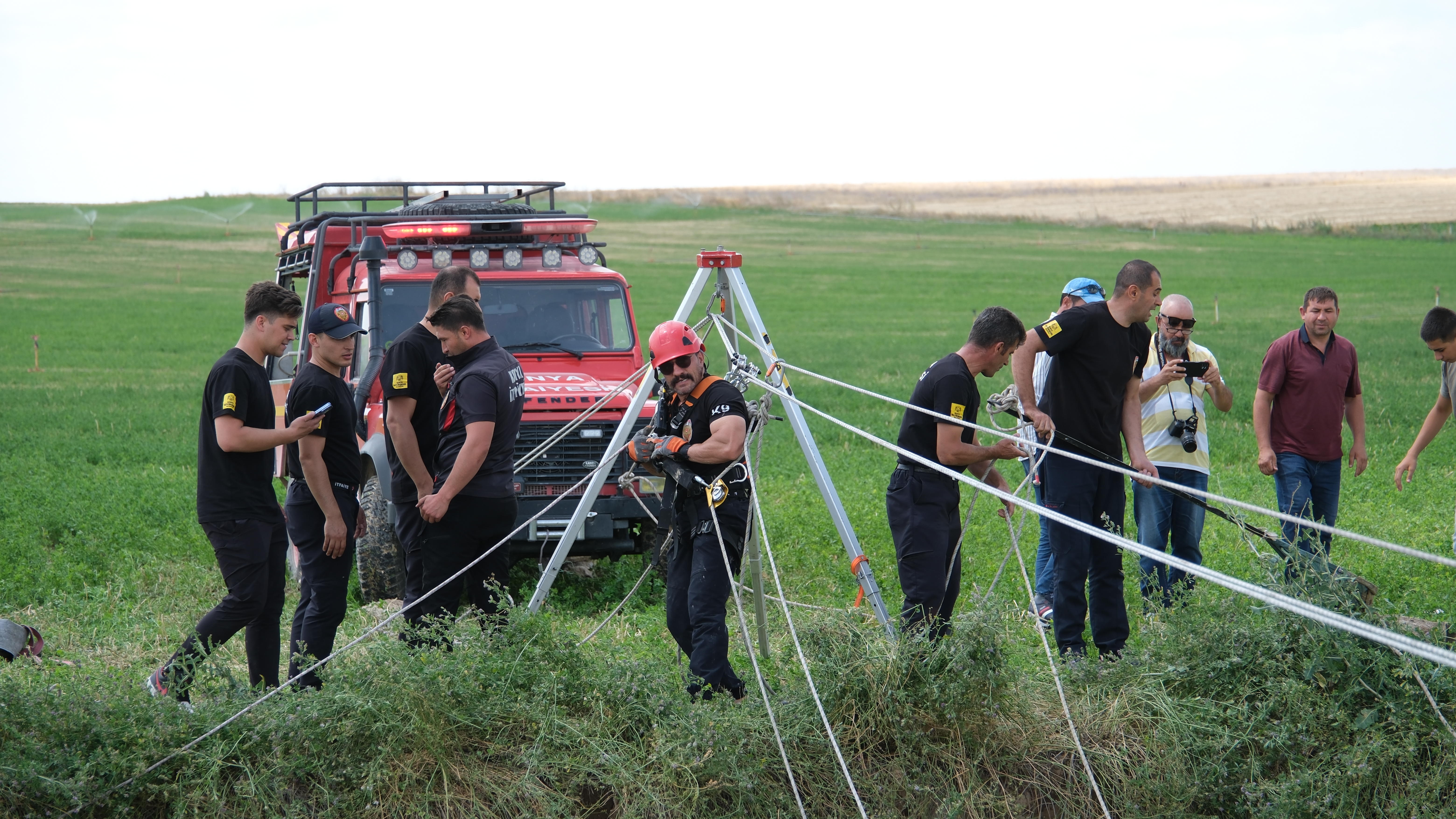 Konya'nın Karapınar ilçesinde, yaklaşık 20 metre derinliğindeki obruğa düşen köpeği kurtarmak için itfaiye ekipleri seferber oldu