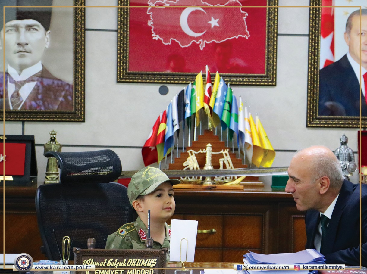 23 Nisan Ulusal Egemenlik ve Çocuk Bayramı dolayısıyla İl Emniyet Müdürü Ahmet Selçuk Okumuş, makam koltuğunu Gevher Hatun Anaokulu Öğrencisi Tuğra İsa Altın'a devretti.