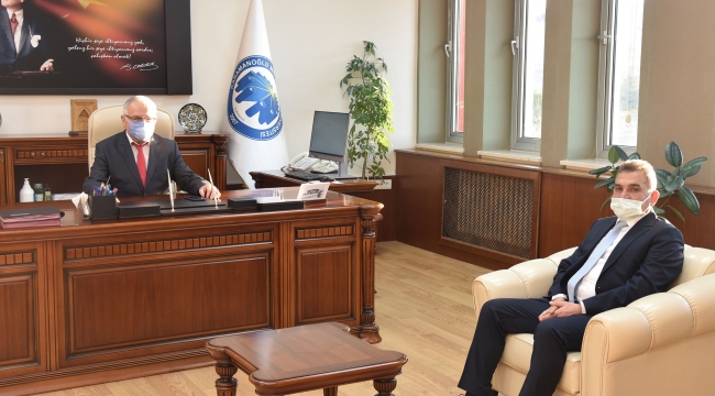 Karamanoğlu Mehmetbey Üniversitesi (KMÜ) Rektörü Prof. Dr. Namık Ak, Karaman İl Emniyet Müdürü Ayhan Taş'ı makamında ağırladı.